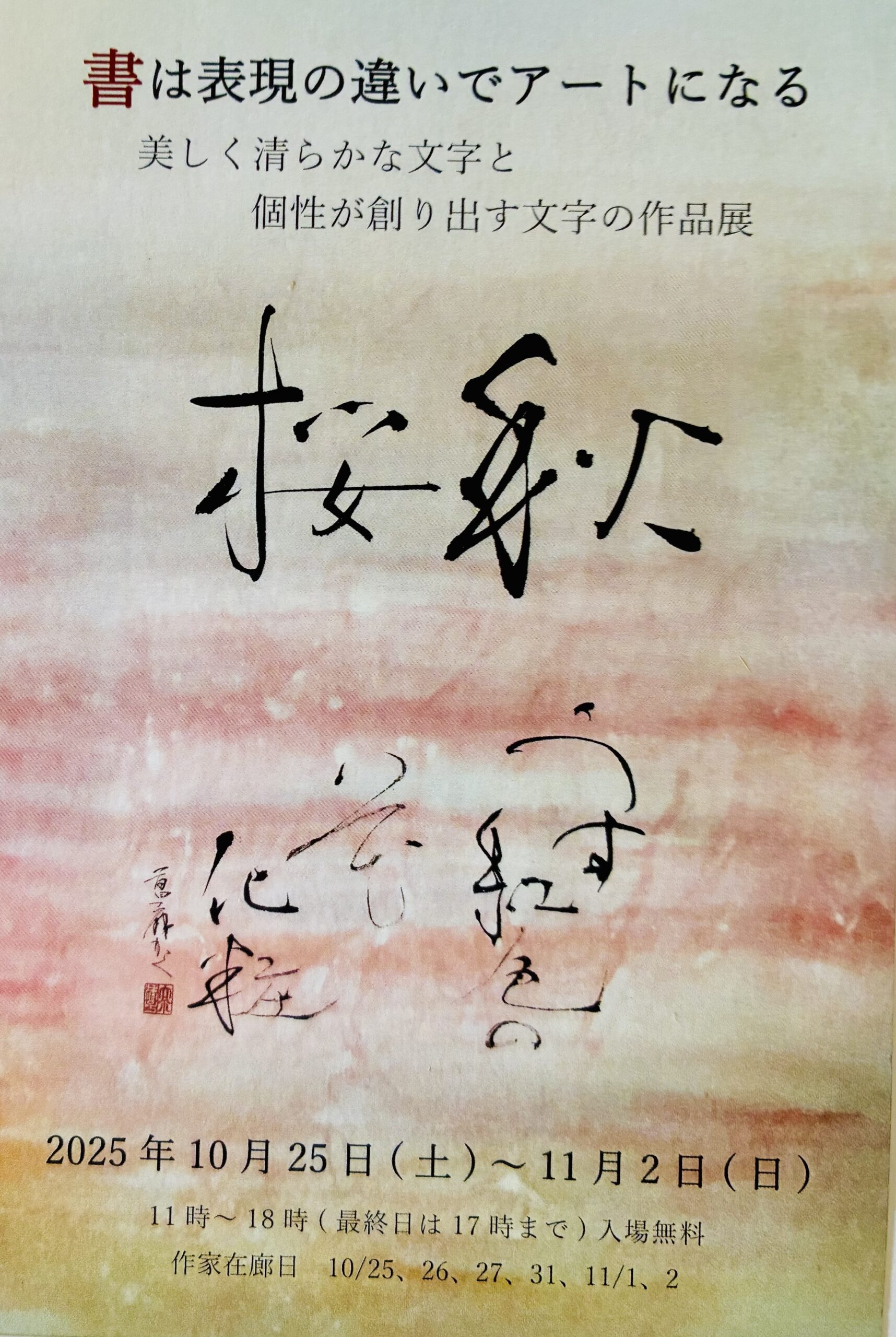 雑誌や企業のイベントポスター等の題字にも携わってきた才能豊かで明るく親しみやすい書家。